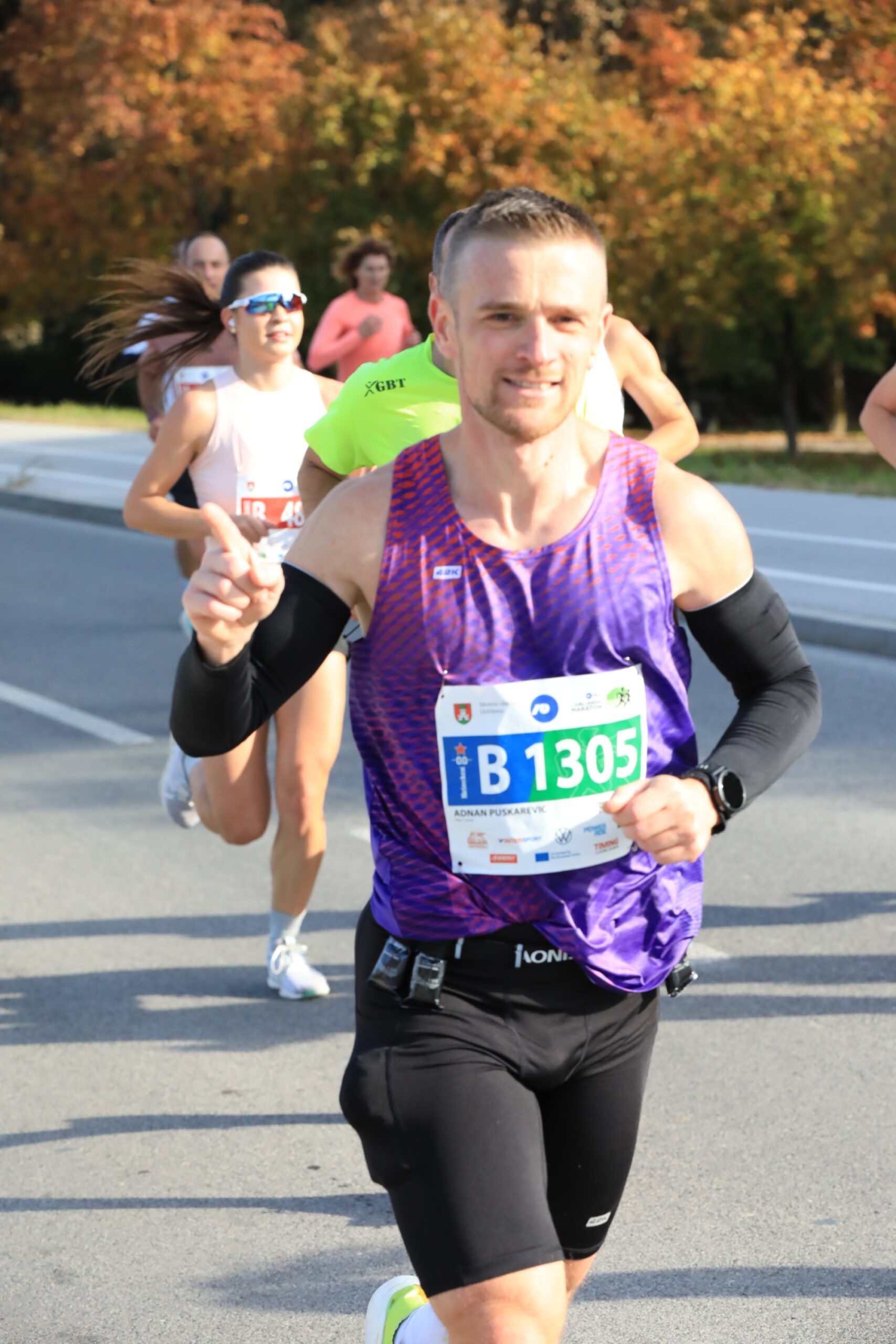 Negdje na 39.-40. km čujem “hajmo Puško”, a onda i gromoglasno “idemo Adnane”, okrećem se i vidim poznati dvojac iz Zenice, Sabit (Šabanović) i Muhamed (Dehić), za dodatni boost u zadnjim kilometrima. 200-tinjak metara pred ciljem Sema i dio Titine ekipe navijaju, a činjenica da sam ih registrovao mi je dobar znak nakon same trke. Skrećem prema cilju, vidim na satu da će biti ispod 3:12, oduševljenje, radost, ponosan na samog sebe, ali i olakšanje što je sve prošlo kako treba. Žurim, koliko se može u datom trenutku, do šatora sa odjećom, kako bih se presvukao, ali i odmah krenuo sa oporavkom. Ostavljam medalju na graviranje, pa presvlačenje. Uzimam telefon kako bih provjerio vrijeme i vidim viber pun poruka, ljudi hvatali i screenshot ulaska u cilj. Hvala svima još jednom, svaka poruka daje podstrek za dalje (koliko god ovo ofucano zvučalo)!