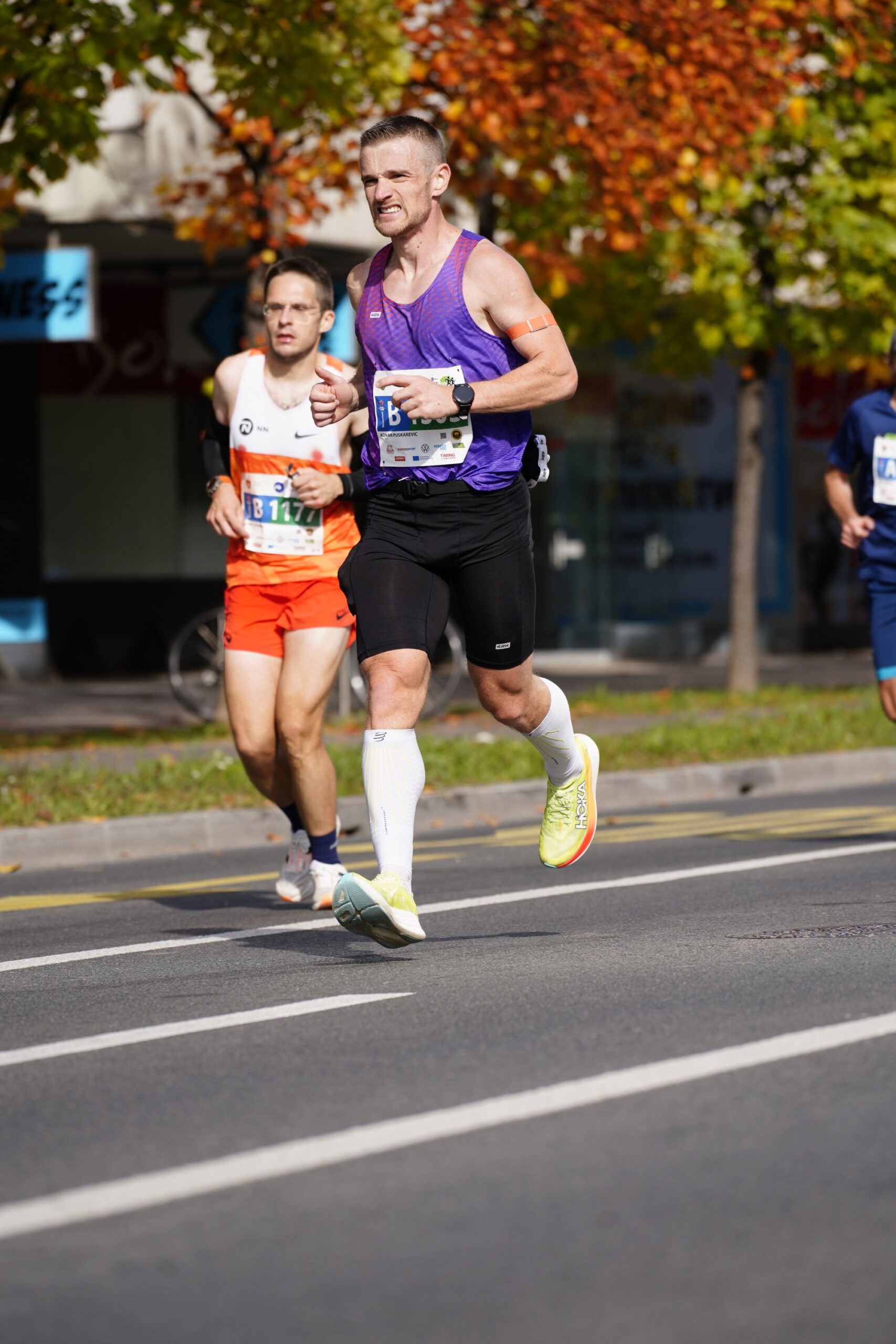 Pred sami start s Muhamedom pričam oko planova za poslije trke i obojica imamo istu ideju, idemo pit pive! Trka kreće i ja samo jedan screen na satu pratim, prosječan pace. Plan je do 32. držati 4:35, a onda kako se mogne. Atmosfera fantastična, navija i staro i mlado, tu su raznorazni navijački rekviziti, uglavnom, buka je tu. Na stazi je dosta trkača, ali nije prevelika gužva, ima se prostora za trčati. Jedino se malo zagužva na okrepama, jer ljudi uzmu vodu i instant se zaustave da piju, pa se do i poslije okrepe trkači moraju izbjegavat kao čunjevi.