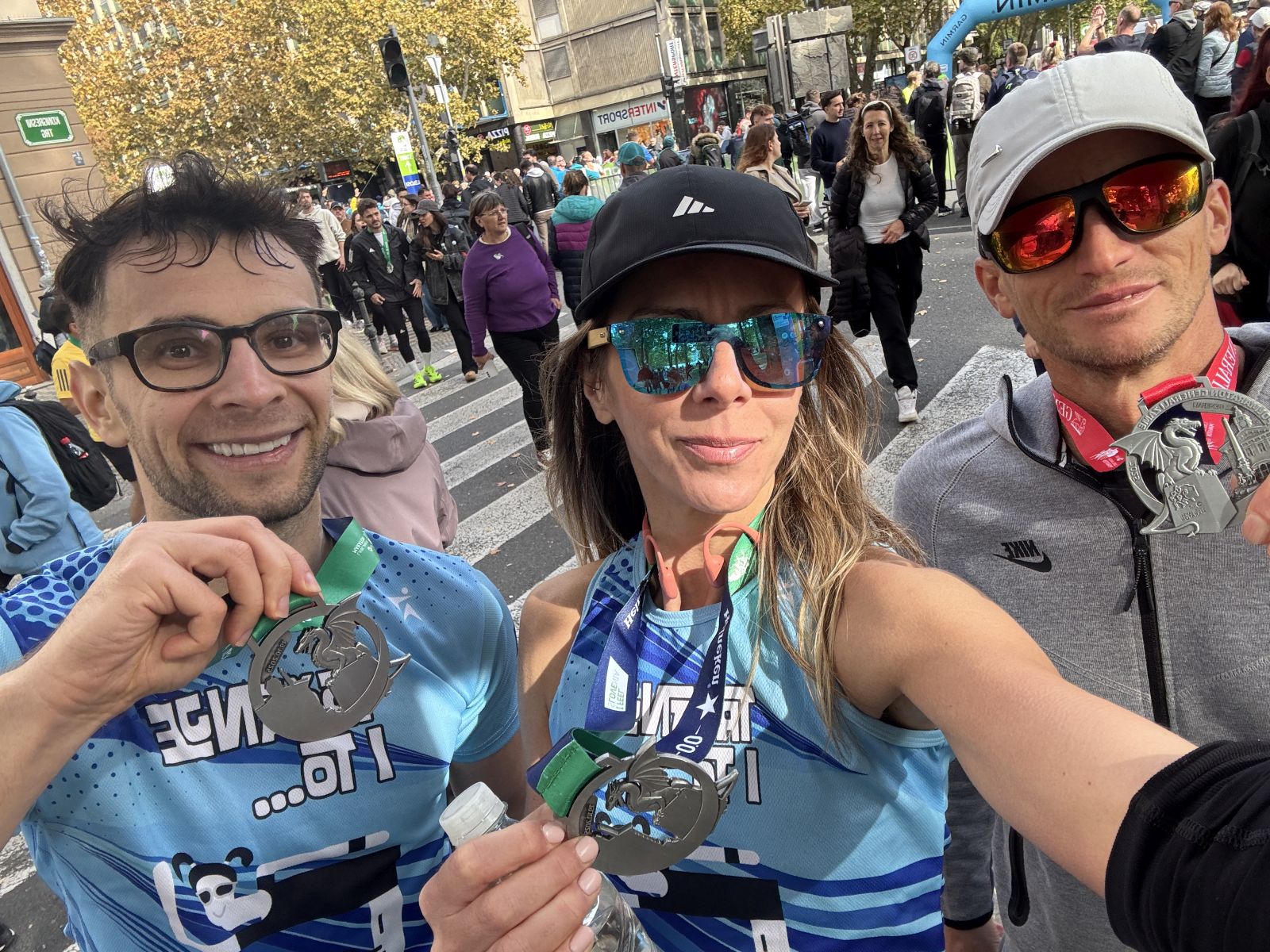 Atmosfera na stazi bila je magična. Ljubljana je tog dana disala za trkače – publika je bila nevjerovatna, navijala je na svakom kilometru, a pred sam ulazak u cilj vladala je prava euforija. Taj trenutak, kada trkači prolaze kroz završni koridor uz aplauze i povike podrške, činio je da se svako od nas osjeti kao pobjednik. Ja sam se zaista tako i osjećala, a po prelasku ciljne linije suze sreće i ponosa same su potekle – pa ja sam sada maratonka! Prva draga i poznata lica koja sam srela po završetku trke bili su Haris Kovačević i Semir Beglerović (neki od najbržih trkača iz naše grupe i meni lično motivacija), koji su također istrčali lične rekorde pa smo zajedno podijelili radost i obilježili trenutak zajedničkom fotografijom sa zasluženim finišerskim medaljama.
