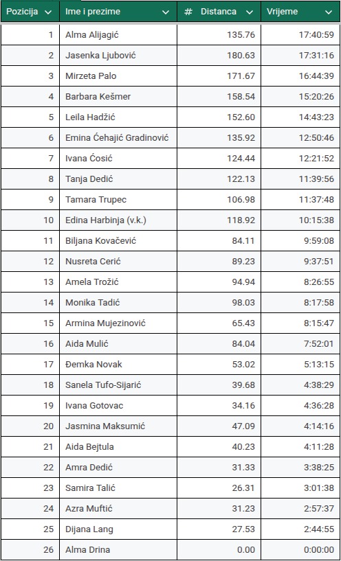Samo troje učesnika zasad nisu zabilježili trkačke sate.
