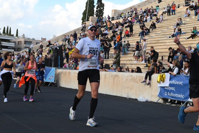 Krećem izuzetno raspoložen prema cilju, atmosfera ludnica, a u posljednjem dijelu trči se prema cilju, kroz špalir navijača prolazeći pored vile Maximou, Predsjedničke palate i Nacionalnog vrta. Nakon čega ostaje samo nekoliko metara u dvorištu stadiona, i ulaska u olimpijski stadion Panathenaic. Bilo je sasvim jasno da ću finiširati autentični sa pristojnim rezultatom.