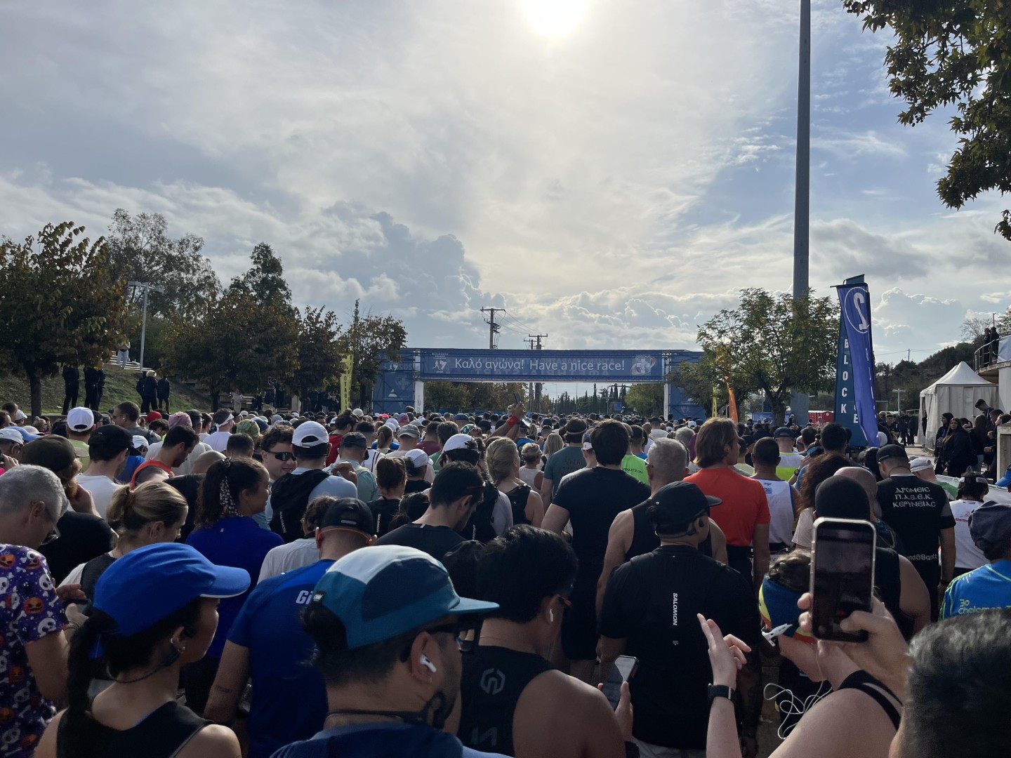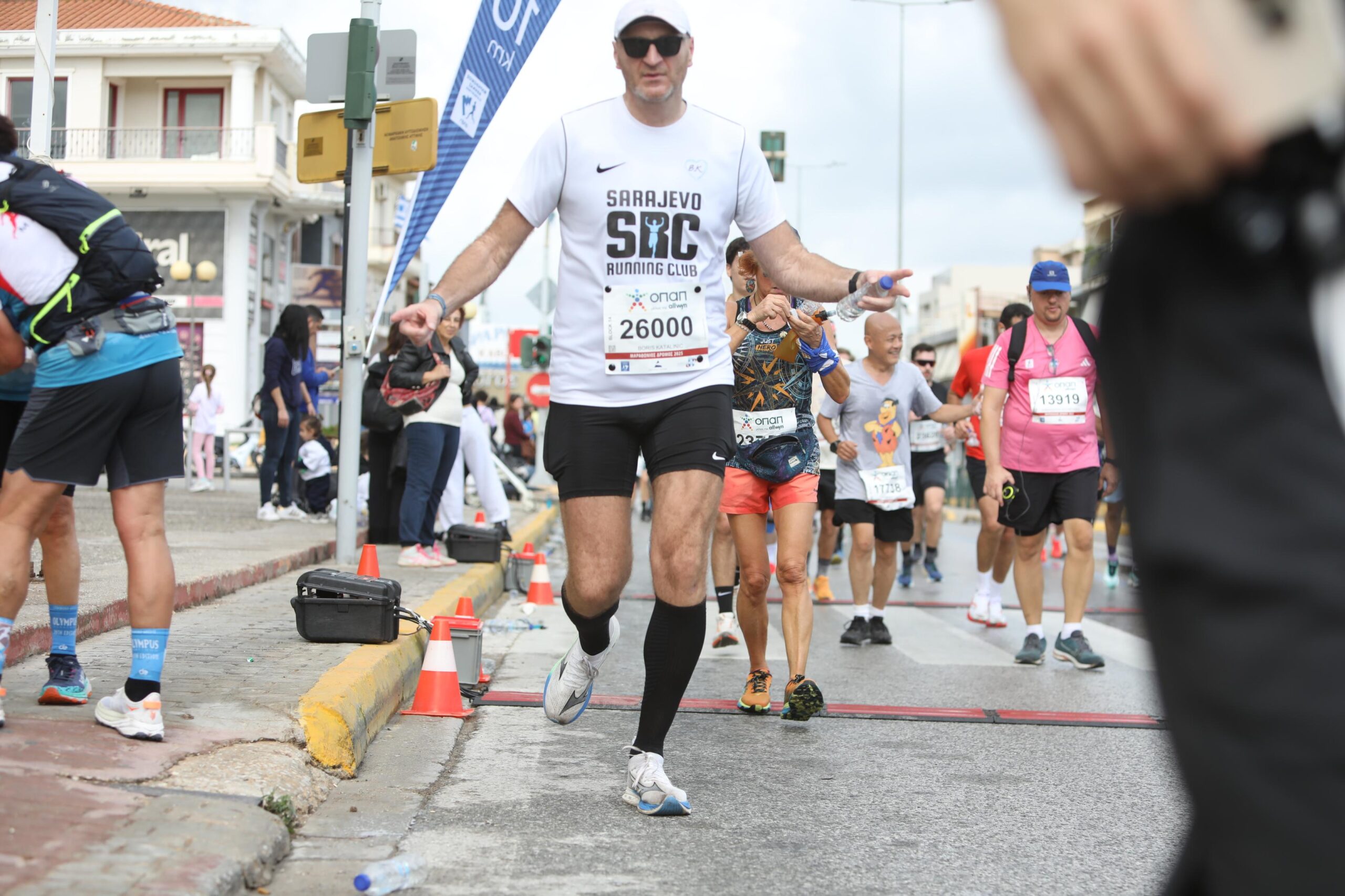 Kiša je prestala, ali sam startao kasnije, temperatura je porasla, očekuje me staza koja spada u najbrdovitije, velika je gužva na startu i sve mijenja. Ništa od personalnog (iskreno, nisam se ni nadao) odlučujem da do cilja dođem brže od 4h:30 min. Ekipa iz grupe „Santiago Bernabéu & Panathenaic“ komentariše kako sam u prvih nekoliko kilometara prestigao preko 2000 trkača (jer je većina trkača puno sporija od mene). Kilometri prolaze, ali gužva ne, još jednom napominjem: obavezno verifikujte svoje najbolje vrijeme prilikom registracije.