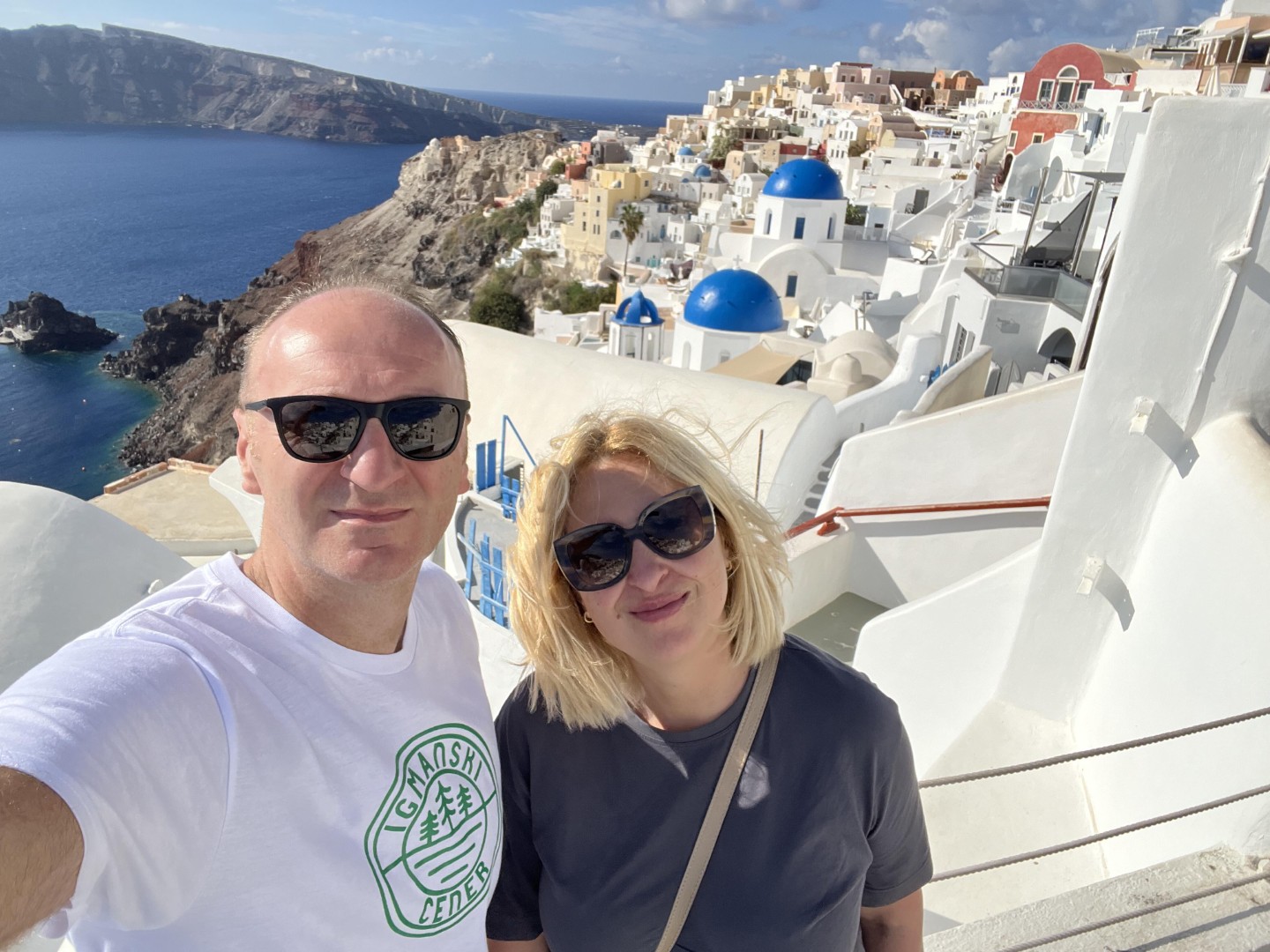 Utorak 11. novembra rano ustajanje i pravac aerodrom. Bez problema pronalazimo parking mjesto i parkiramo auto. Ruksak na leđa, avion i pravac otok. Let je planiran za 6:50 i izuzetno je kratak. Ukupno 35-40 minuta, i tu smo. Plan je bio smjestiti se u gradu Fira, jer se on nalazi u sredini (Caldera) velike depresije koja je nastala kada je vulkan eruptirao. Upravo je kaldera glavna atrakcija, njenim padinama grade se poznati „cave“ apartmani koji su jednostavno napravljeni za čisti hedonizam. Drugi razlog odabira Fire, je javni prijevoz koji preporučujem kao nepovoljniji za obilazak otoka, a koncipiran tako da svi putevi vode u Firu i iz Fire. Pronalazimo smještaj (ASHA luxury suites), ostavljamo stvari i pravac gradić Oia. Englezi bi rekli u „the most breathtaking town“ na otoku.