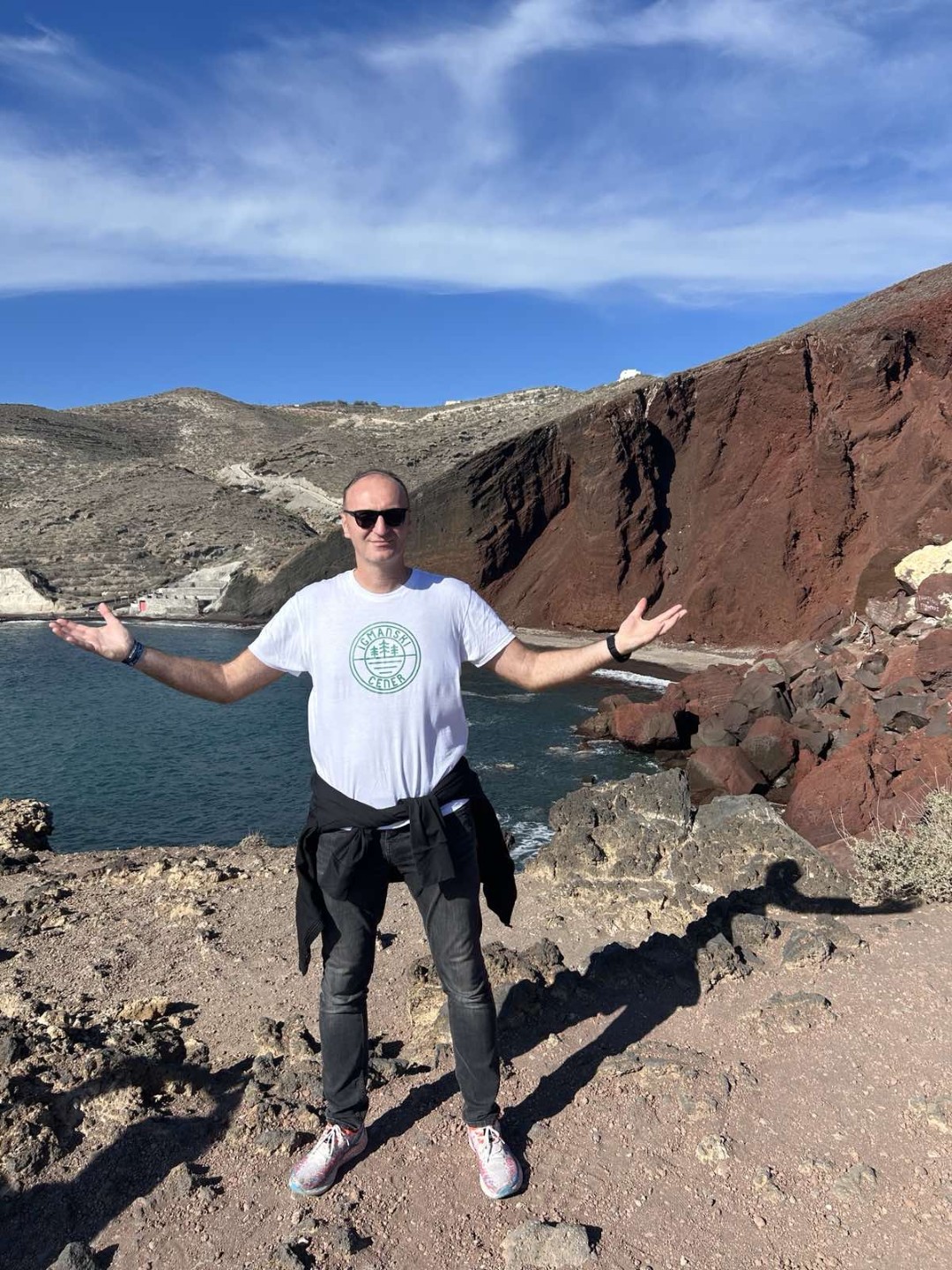 Stižemo ranije ujutro, to doba dana, tišina i mir prekrivaju grad. Ulice su romantično uske, a bjelinu građevina razbija morsko plava boja prozora, kupola, zvonika crkava, i sl. Nakon ugodne šetnje i obilaska atrakcija poput crkava Anastasi i Agios Spyridon, koje se najčešće nalaze na razglednicama, pronalazimo restoran sa baštom koja pruža fantastičan pogled na kalderu. Nakon doručka, krećemo na suprotnu stranu otoka, kako bismo posjetili drevni grad Akrotiri i popularnu turističku atrakciju vulkansku pješčanu plažu (Red Beach), poznatu po svom karakterističnom crvenom pijesku (oksidirano željezo). U poslijepodnevnim satima, oduševljeni viđenim, vraćamo se u smještaj koji je kao iz snova, na terasi „hot tub“, opuštanje, hidroterapija, vino, zalazak sunca…jednostavno, hedonizam na kvadrat.