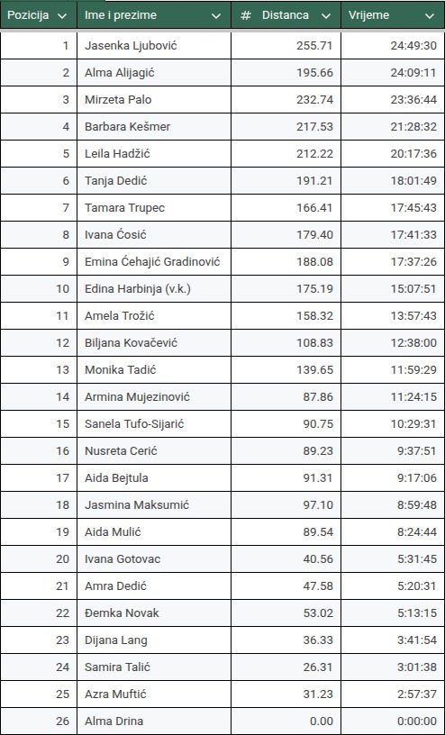 Distanca: 30 km (Emina Ćehajić Gradinović i Leila Hadžić)