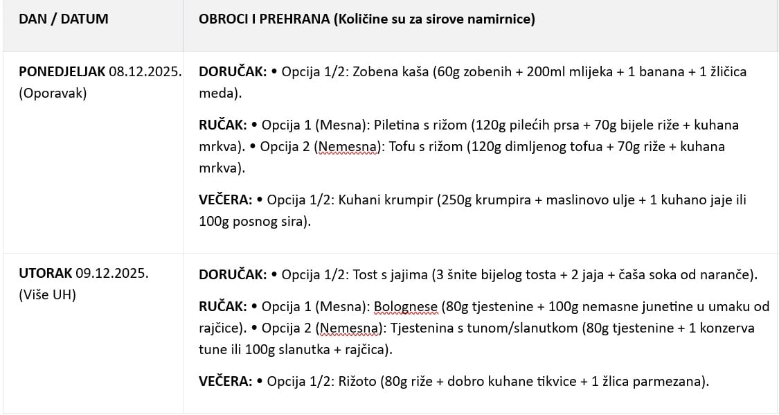 Zamislite da je pred vama onaj famozni tjedan – tjedan taperinga. Treninzi se smanjuju, noge postaju nemirne, a glava puna pitanja: “Jesam li dovoljno trenirao?”, “Što ako bude kiša?”, i ono najvažnije – “Što, pobogu, trebam jesti?”.
