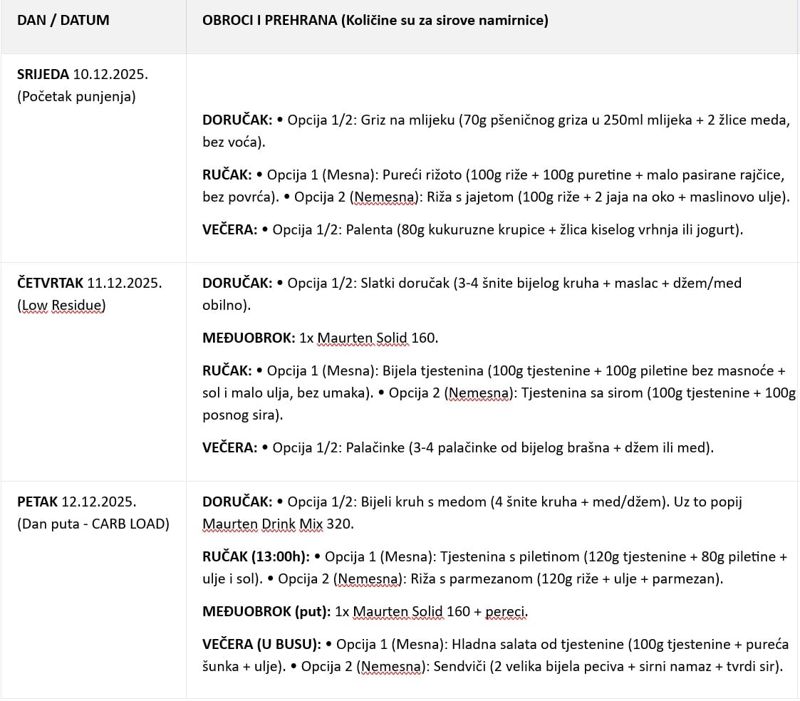 • Moja taktika: U zadnja 2-3 dana dodajem malo više soli u hranu ili pijem izotonike. Sol pomaže zadržati tekućinu u tijelu, što je ključno da ne dehidrirate na stazi.