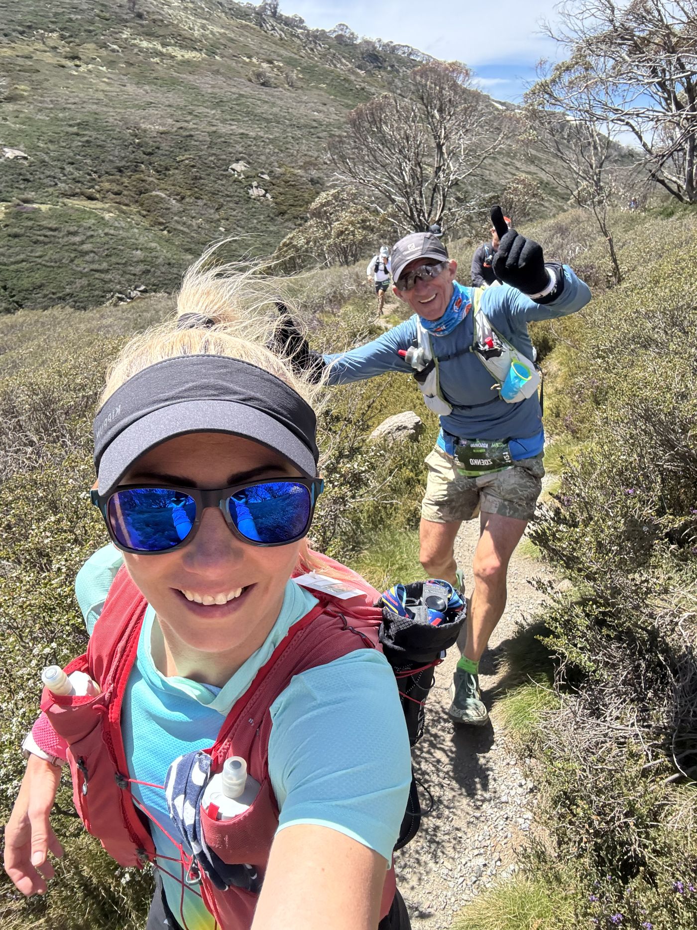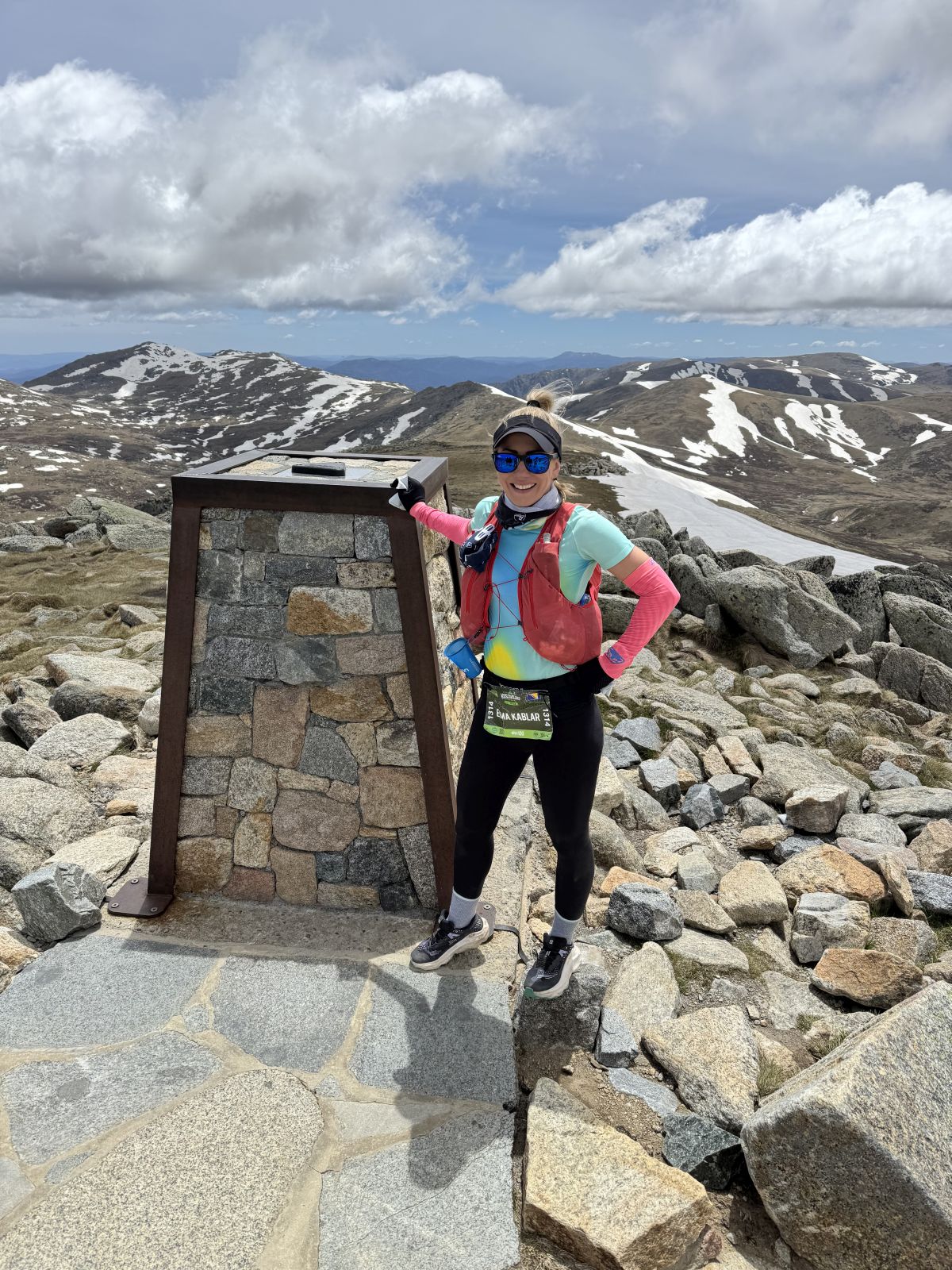 Stigla sam do poznatog obilježja vrha najviše planine u Australiji, Kosciuszka 2.228m. Prava alpinistička idila – snijeg se polako topi, ali ga još ima dosta na nekim dijelovima koje smo morali prelaziti. Volonteri su pravili stepenice u snijegu da nam olakšaju kretanje. Rukavice i helanke nisam skidala. Iako sam mislila da će mi biti vruće, bilo je više zima nego ljeto. Stigla sam do sljedeće okrepe gdje nas je čekao Adam. Zbog vjetra sam potrošila mnogo energije pa sam bila stvarno gladna. Na okrepi je bilo svega. Jela sam lubenicu i sendviče s Nutellom. Ono što u zadnje vrijeme koristim na ultra trkama su NAAK proizvodi, pa uvijek u jednu flašu stavljam NAAK miks, a u drugu vodu. Mješavina NAAK sadrži elektrolite i ugljikohidrate, jer na ovim distancama ponekad nije moguće jesti dovoljno da tijelo dobije potrebnu energiju za izdržati do kraja utrke. Gelove ne uzimam, ali ih ponesem u slučaju da nešto krene po zlu jer su oni uvijek korisni da se nadoknadi energija brzo.