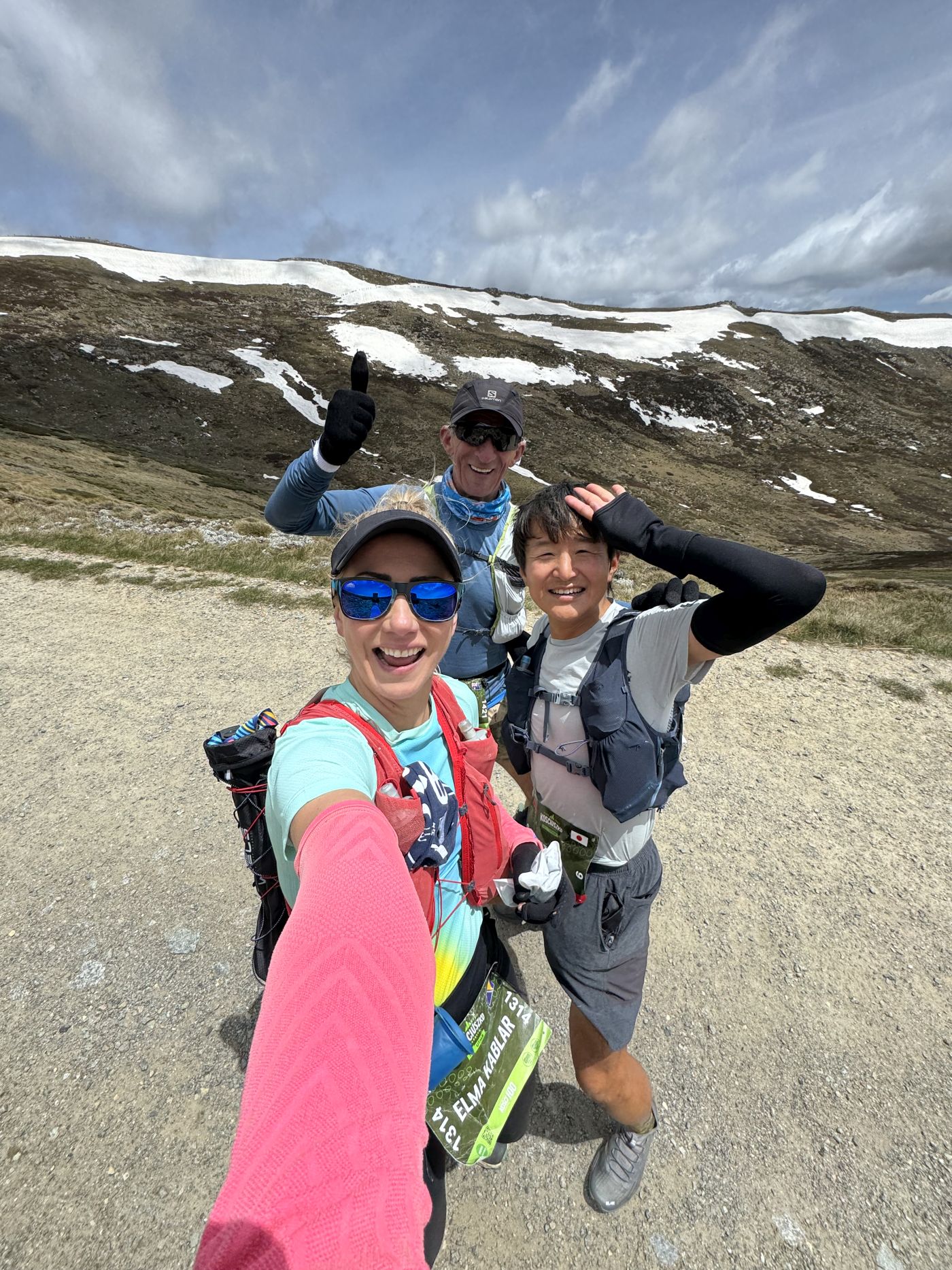 Nakon toga smo penjali planinu Kosciuszko (2.228 m). Po mom planu, trebala sam ovaj dio od 16,5 km istrčati za najviše dva sata, ali zbog jakog vjetra koji je cijelo vrijeme puhao u suprotnom pravcu, borila sam se da me ne obori. Nikad nisam doživjela takvo nešto. Napravila sam dužu pauzu na prvoj okrepi. Sa trail trkama nikad ne znaš šta te može dočekati. Usput sam srela Watarua Itoa, poznatog japanskog trkača koji trči kontinente i upravo je završio Australiju od Pertha do Sydneya, a sada učestvuje na Kosciuszko 100 milja. Naravno, stao je i rekao: „Elma san, hajde da se slikamo zajedno.“ Nisam planirala to pitati jer je trka, ali kada je on predložio i vratio se da se slikamo, to pokazuje koliko poštuje sve koje sretne. Divna uspomena. On je nastavio niz vjetar, a ja uz vjetar, jer smo trebali doći do vrha Kosciuszko planine i onda se vratiti.