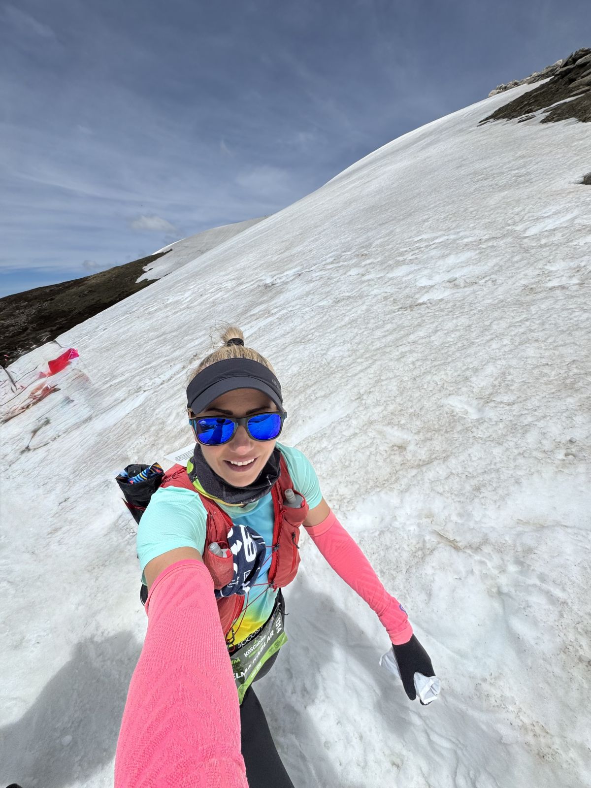 Kako sam se penjala, vjetar je opet počeo jako puhati. Malo je počela kiša, ali sam mislila da neće dugo trajati, imala sam tanku jaknu za kišu i vjetar koja je bila ok. Nisam htjela stati na vjetru jer bih se smrzla. Počela je jača kiša dok smo se penjali prema vrhu. Odjednom je na stazi bio snijeg. Smrzavala sam se i govorila sebi: „Samo da stignem do okrepe da obučem sve za kišu i izvadim jednokratne grijače koje sam ponijela iz Japana, a koji su me spasili od hladnoće cijelu trku.“