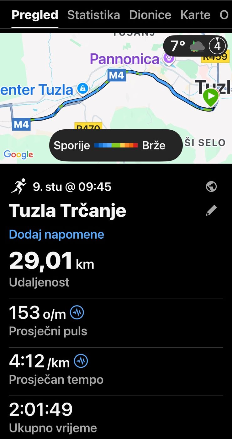 Od 29.10.2025. uveo sam odmor srijedom i subotom. Do tada sam i u te dane trčao lagani futing od 6 km. Sada je bolje — više svježine.