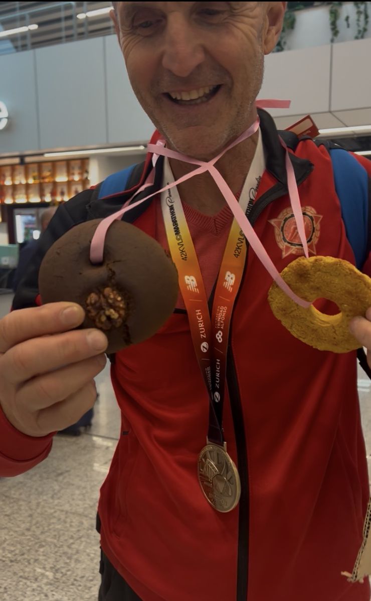 Jedna trka – tri medalje. To može samo Valter. Doček u Sarajevu. Moja supruga me posebno obradovala kada me je dočekala na aerodromu Sarajevo. Papir s natpisom Walter.com i uručenje još dvije medalje: gurabija od pekmeza, jabuke Ramićke te proha od domaćeg kukuruznog brašna. Zna ona da su to dva moja omiljena jela. Gorivo za dalje.