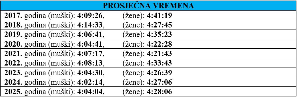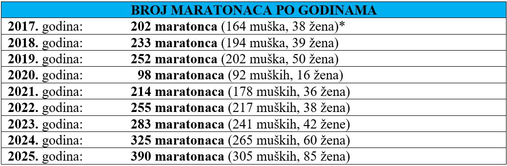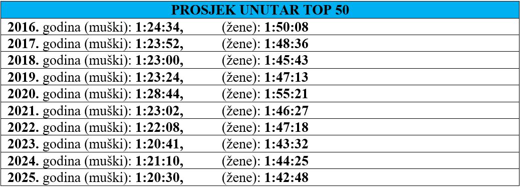 *Prosjek za maraton izvodimo iz posljednjih devet godina jer smo 2016. godine vodili samo Top 50 maratonaca/maratonki.