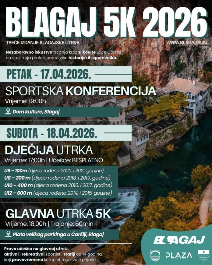 – Blagaj 5K nije samo sportski događaj, već i prilika da pokažemo koliko je Blagaj značajan za turizam, kulturu i historiju naše zemlje. Kao organizatori, ove godine smo povećali broj aktivnosti kako bismo obogatili cijeli događaj i učinili ga zanimljivijim za sve generacije. Uz samu trku, pripremili smo porodični dan na Starom gradu u Blagaju, dječiju trku i sportsku konferenciju. Na taj način želimo spojiti sport, porodicu i zajednicu, ali i dodatno promovisati Blagaj kao jedno od najljepših i najznačajnijih mjesta u Bosni i Hercegovini. Dat ćemo sve od sebe da Blagaj 5K bude što bolji, kvalitetnije organizovan i sadržajniji događaj za sve učesnike i goste, izjavio je ispred organizatora Jasmin Pandur.