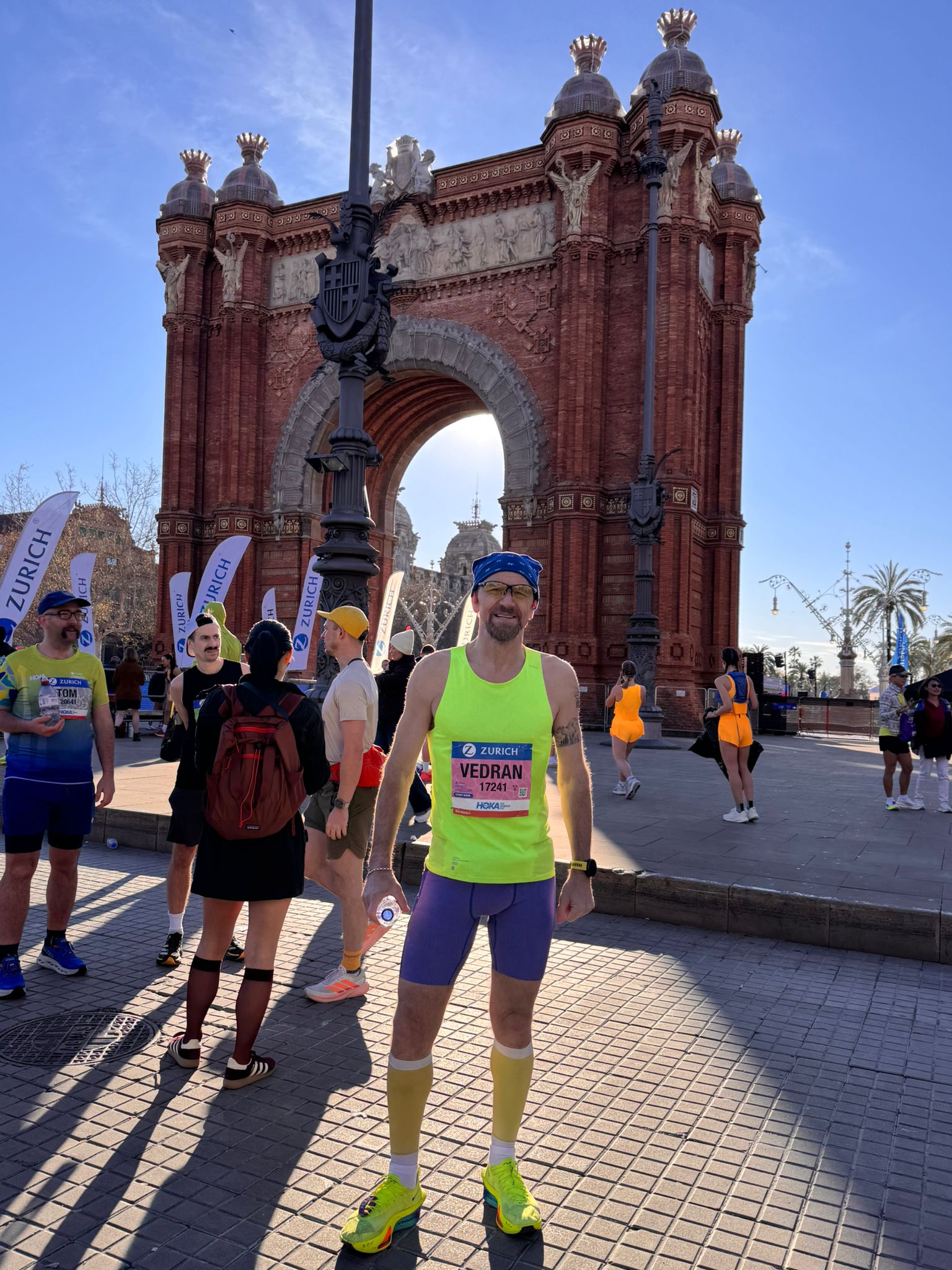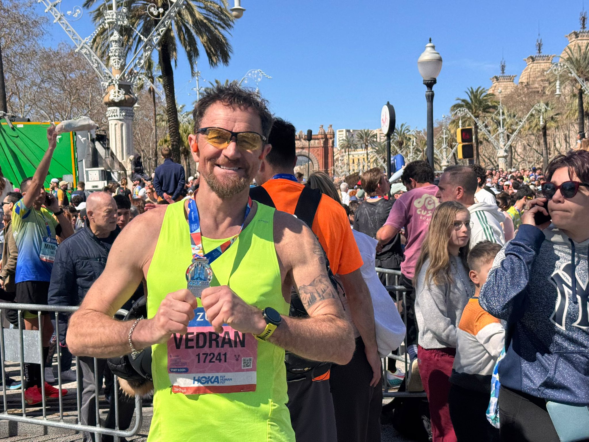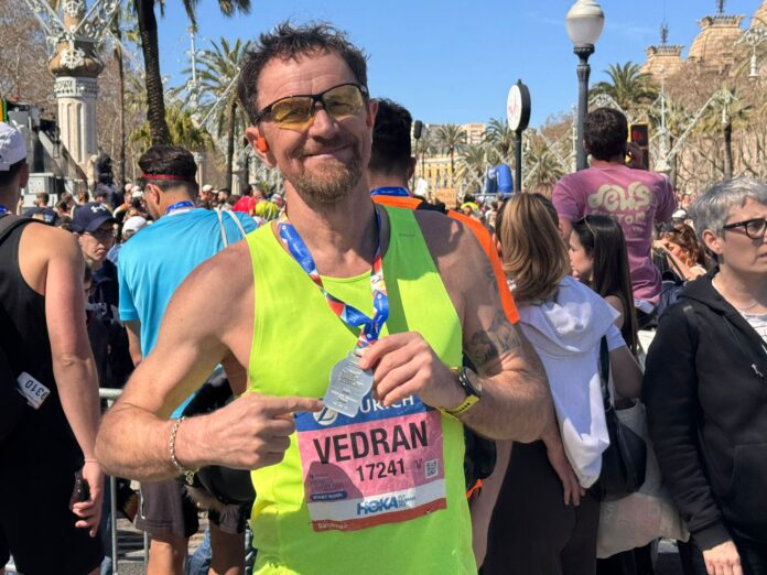 Potom je bio postavljen cilj istrčati do 35-tog km, a potom još 5 km malo brže pa zadnja 2 km, što bi mi rekli „trčati životom“. E pa nije baš sat pokazao tako iako sam trčao „životom“ jer je 41. km malo strmiji u smjeru koji nije omogućio baš neko značajnije ubrzavanje. Tokom trke, nije bilo nikakvih izraženih „zidova“, za to se pobrinula Barcelona sa svojim stanovnicima. Ljudi su nevjerojatni, čitaju vaše ime s broja i prozivaju vas, ali ne da vam spominju familiju, nego da vas bodre. Nisam čuo ni jedan automobil da je zasvirao. Sve u svemu kroz cilj sam protrčao sretan i zadovoljan postignutim rezultatom. Nisam očekivao baš ovakav rezultat, iako je potajno negdje bila skrivena želja tih 3sata i 20minuta, čak sam to nekim prijateljima i spomenuo, ali dragi čitatelji ja sam ipak „vremešniji čikica“ (55+), koji se trčanjem bavi iz ljubavi, a ne profesionalno, te je postignutih 03:20:01 isklesano na medalju za mene ogroman uspjeh.